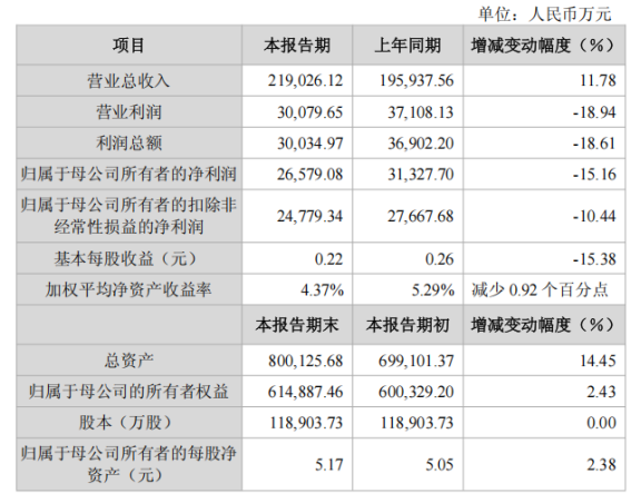 财报显示,截至2025年末,公司总资产达80.01亿元,较年初增长14.45%;归属于母公司所有者权益61.49亿元,较年初增长2.43%,每股净资产5.17元,较年初增长2.38%,整体财务状况保持良好。