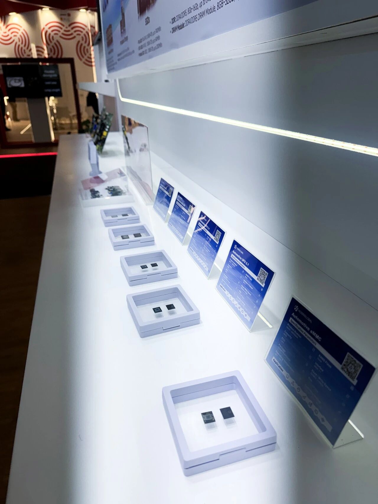 本次展会上,宏芯宇集中展出了全系列存储产品——eMMC、UFS、uMCP、LPDDR嵌入式存储产品,消费级与企业级SSD,DDR4/DDR5 DRAM,以及车规级高可靠性存储产等,全面覆盖智能终端、数据中心、智能汽车等核心场景,深度赋能 AI 与传统产业融合创新,充分展现宏芯宇在高端存储领域的技术积淀与创新能力。