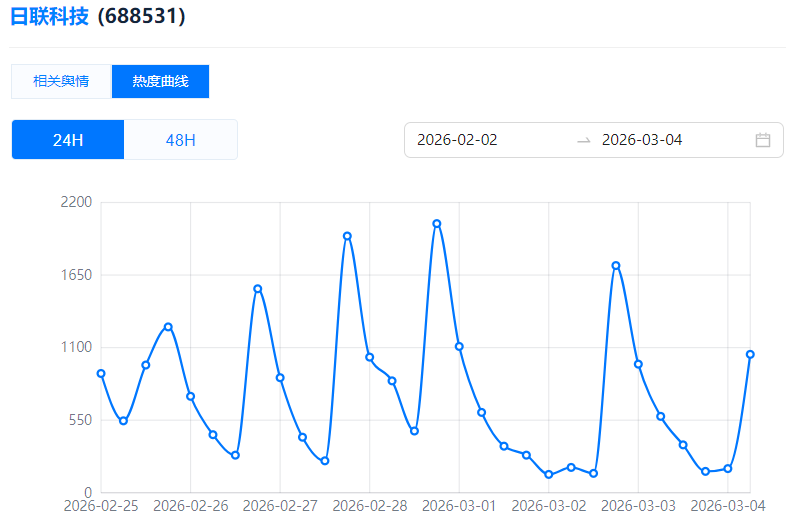 (日联科技热度曲线)
