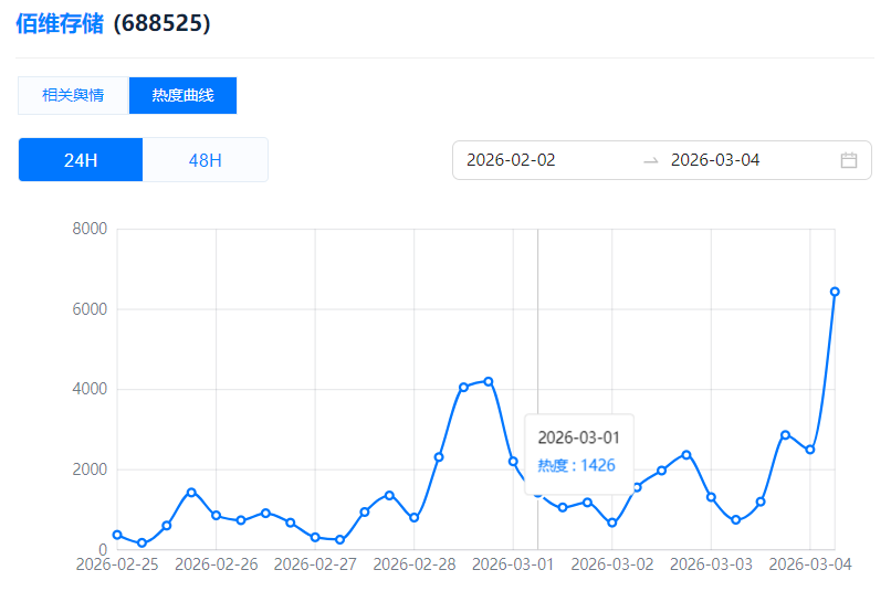 (佰维存储热度曲线)